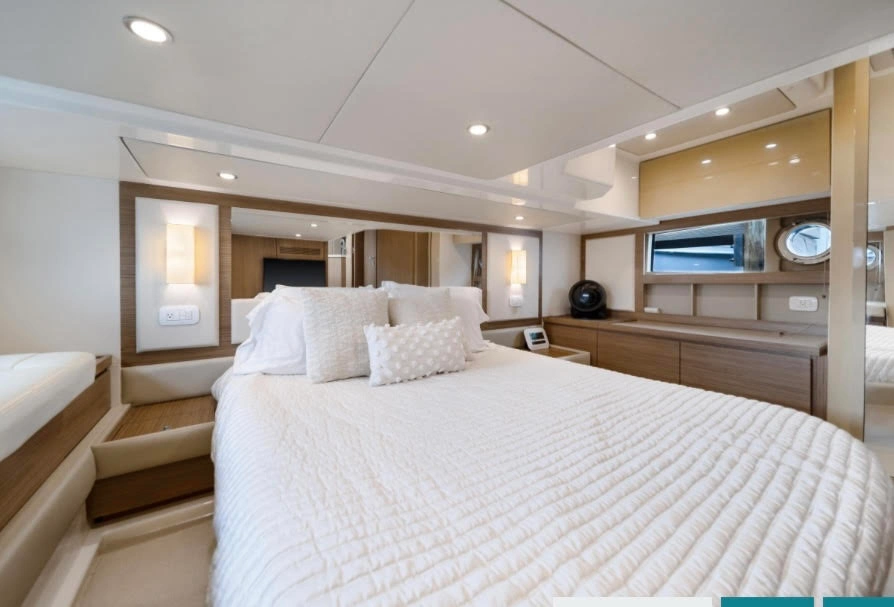 An air-conditioned cockpit with a convertible hardtop, giving you the choice to sail with the wind in your hair.